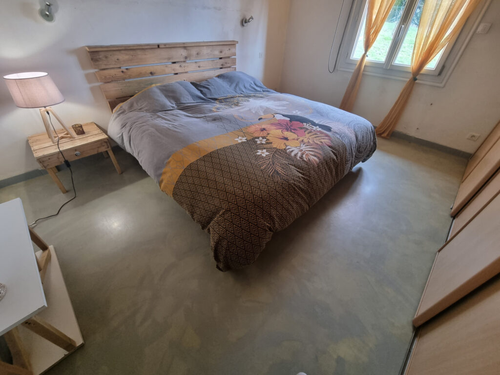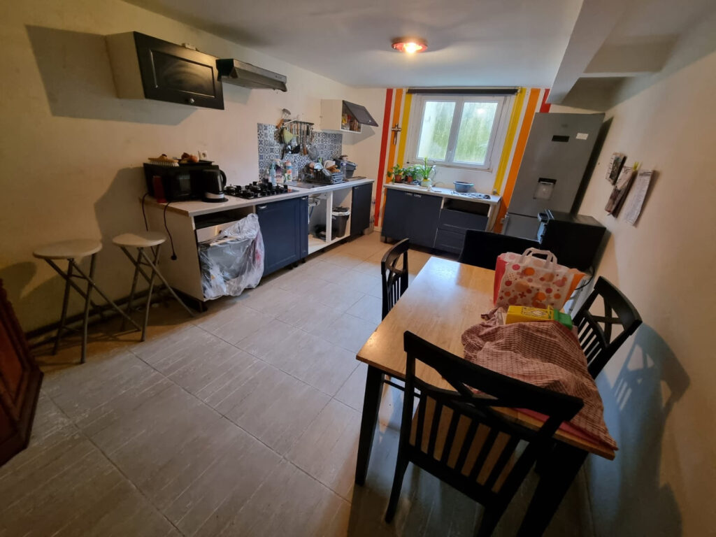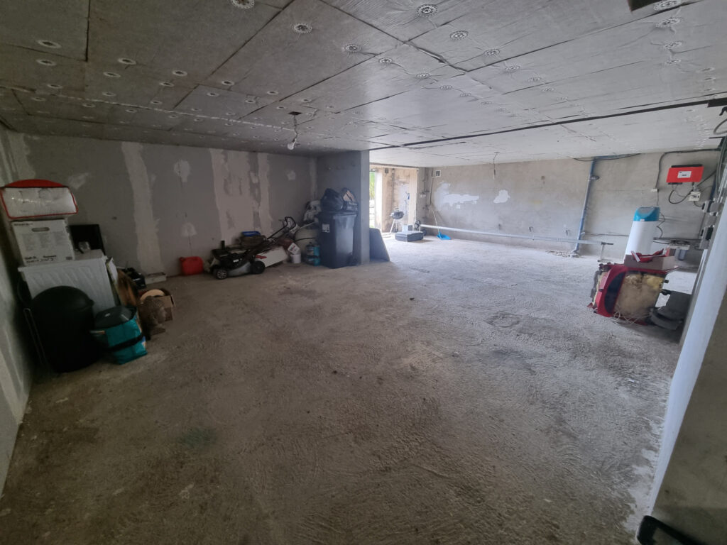 Un sous sol d’environ 80m2 avec une partie aménagée comprenant une cuisine équipée, une chambre ainsi qu’une salle d’eau.