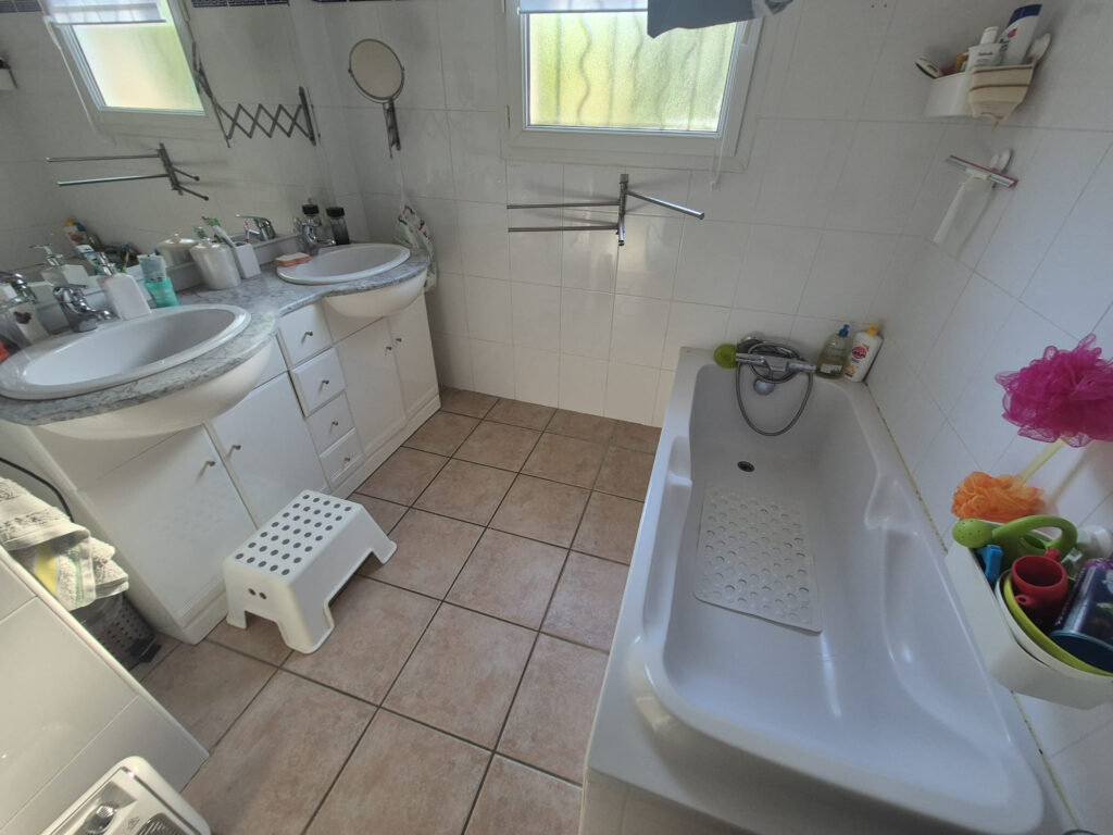 Une salle de bains , trois chambres, un grand cellier, un wc indépendant .