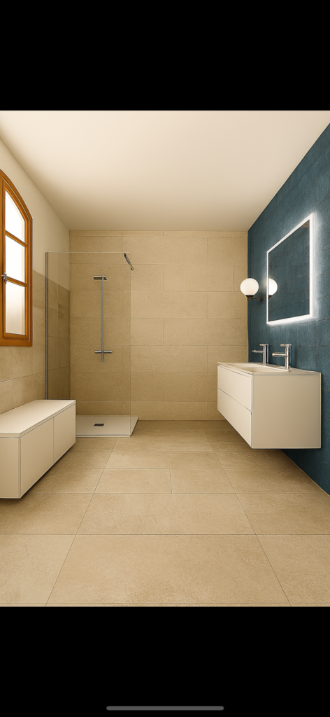 A l’étage une grande chambre avec une belle terrasse et sa salle de bains et un wc indépendant